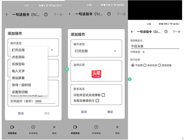 同时,煎饺App兼顾了不同用户的需求,提供高度定制化的操作空间。针对科技极客,它推出“指令工厂”功能,支持自定义复杂指令链,满足个性化高效需求;而面向普通大众,其内置的100+高频场景预设模板,让用户无需额外配置就能直接上手,真正实现“你的手机,由你定义”。