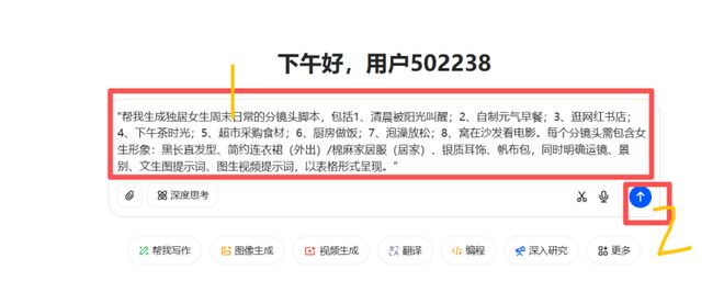 第一步:打造精准分镜头脚本 这类vlog主打“沉浸式生活场景”,不用复杂文案,重点靠镜头语言传递氛围。建议先多刷对标账号,参考场景搭配逻辑,再结合目标带货品类设计脚本。 提示词参考:“帮我生成独居女生周末日常的分镜头脚本,包括1、清晨被阳光叫醒;2、自制元气早餐;3、逛网红书店;4、下午茶时光;5、超市采购食材;6、厨房做饭;7、泡澡放松;8、窝在沙发看电影。每个分镜头需包含女生形象:黑长直发型、简约连衣裙(外出)/棉麻家居服(居家)、银质耳饰、帆布包,同时明确运镜、景别、文生图提示词、图生视频提示词,以表格形式呈现。” 如图所示